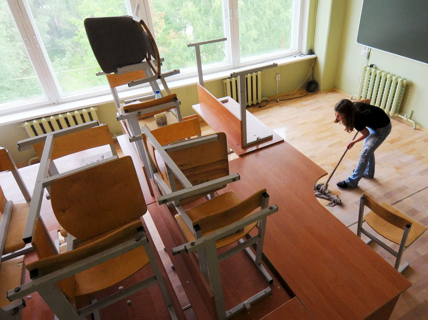 Уборка школы включает в себя уборку классных комнат, коридоров, столовой, аудиторий, кабинетов учителей, уборку туалетов, вынос мусора, уборку спортивных залов и другие необходимые виды работ.